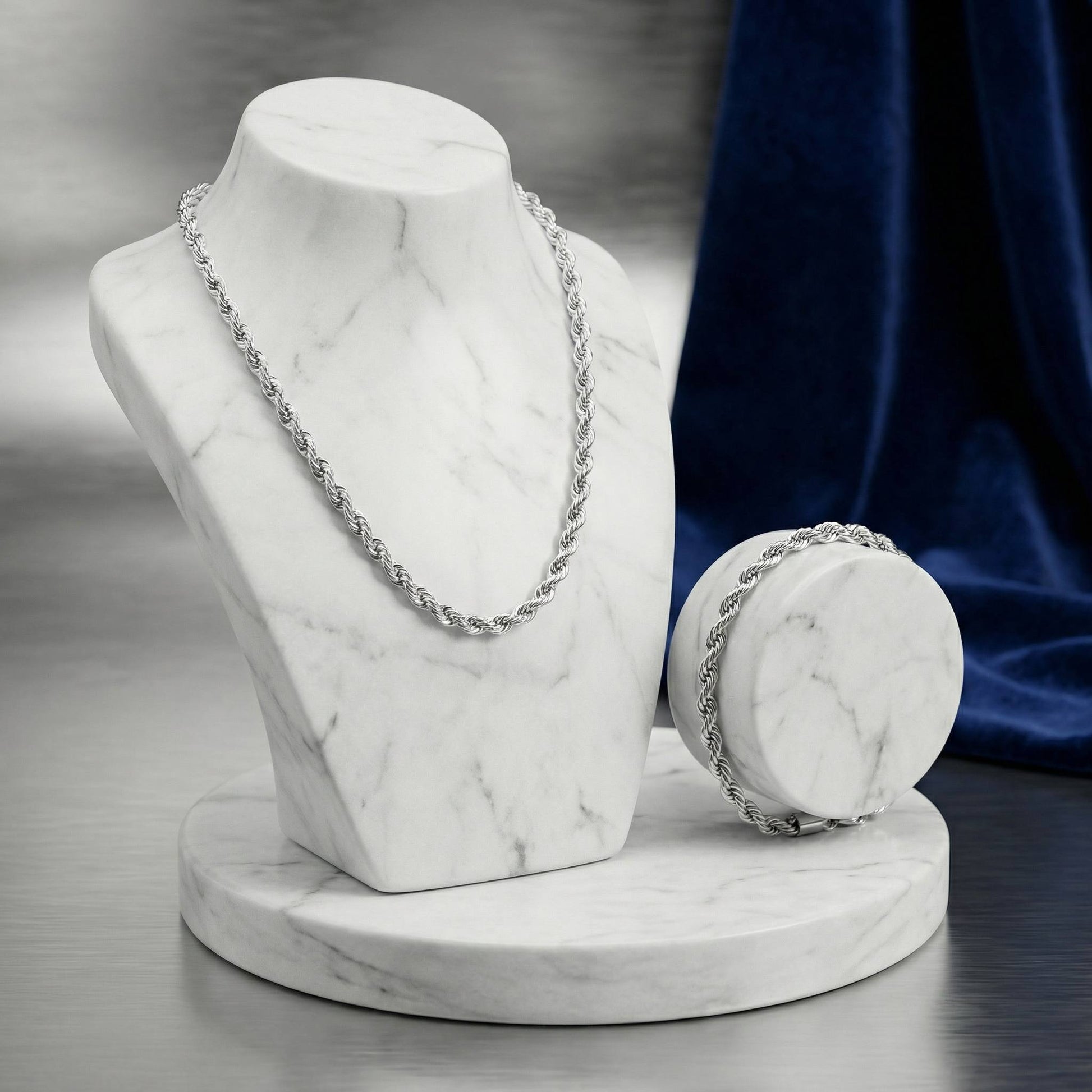 Massimizza il tuo stile con la Combo Rope Bold 4mm – Unbound Set. Abbiamo unito i nostri due pezzi più amati in un'unica soluzione unisex, pensata per chi non scende a compromessi. Un set coordinato che emana sicurezza, forza e un'eleganza senza tempo.
